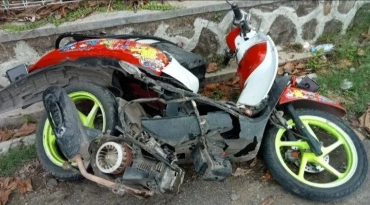 (foto motor milik mahasiswi asal Demak tersambar kereta api di Jalur Poncol-Jerakah,Tugu, Kota Semarang)